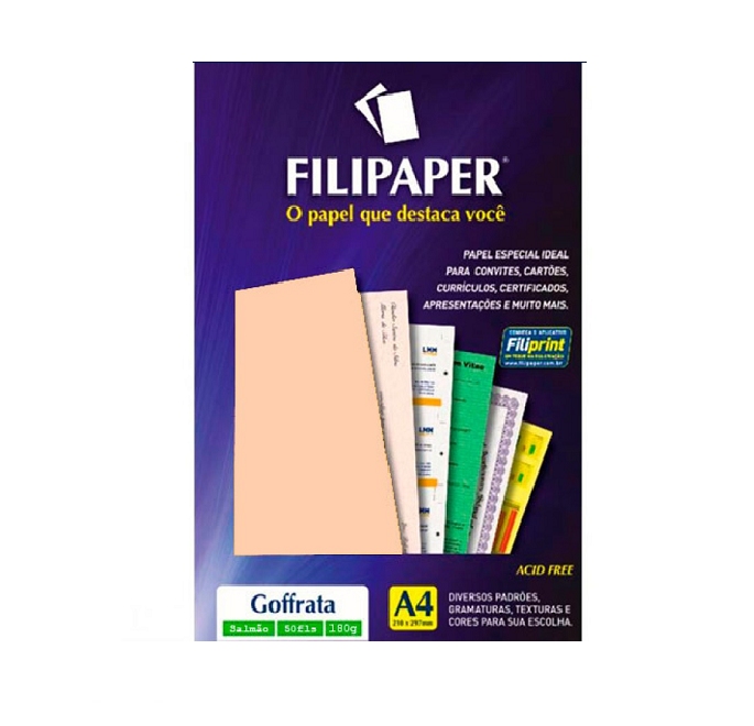 Papel filiperson goffrata 180gr salmao a4 50fls