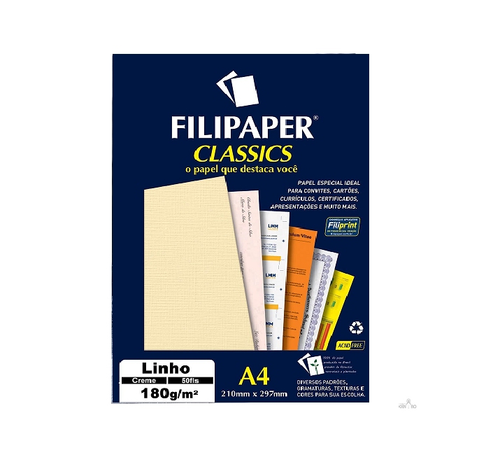 Papel Filiperson Linho 180gr Creme A4 50fls