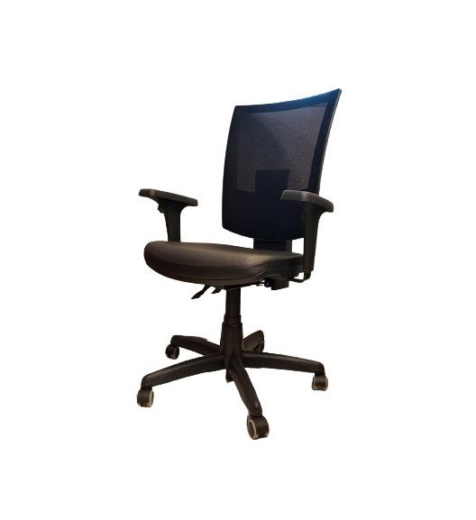 AJUSTE DE ALTURA, PROFUNDIDADE DE ASSENTO, AJUSTE DA ALTURA E ENCOSTO. SISTEMA RECLINAVEL DO ENCOSTO. BRAÇO REGULAVEL. ASSENTO VINIL T19 PRETO ENCOSTO TELA T62 PRETO.